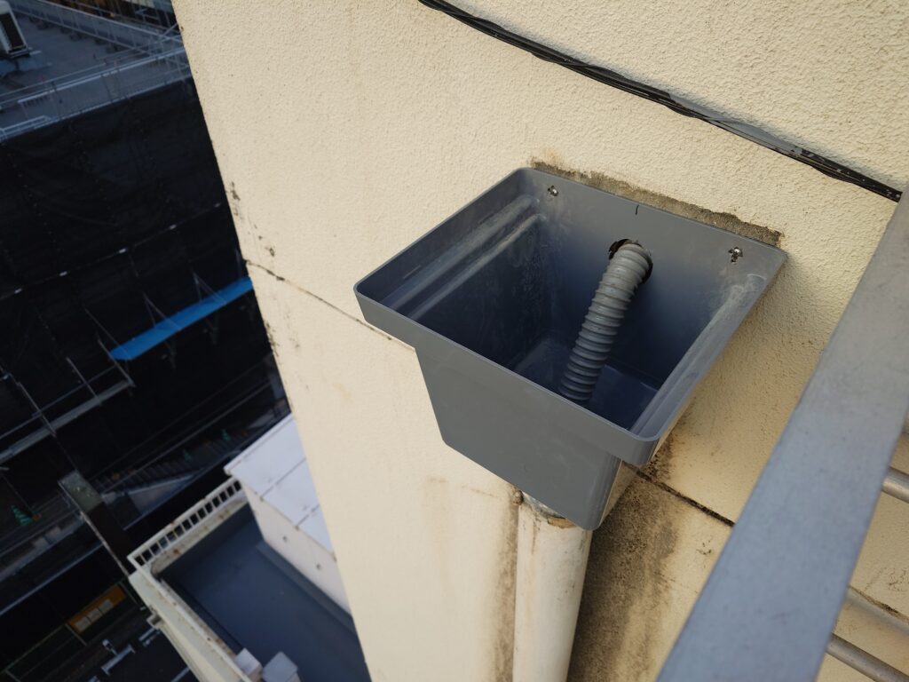 既存の外壁、竪樋につくべきはずの集水桝がない。。